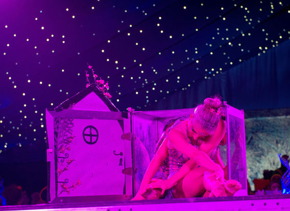 We have beautiful dancers dressed as pixie and fairy characters, dramatic aerial silks duo, pole acro, contortionist’s duo squeezing themselves into a tiny 21 x 21 x 23 inch fairy door box and a powerful Ice queen on aerial hoop.